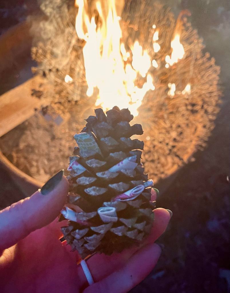 Place your pinecone where it will be undisturbed. And then on the 12th night after Yule (December 31st) hold it in your hands and repeat your chant again. Then throw it into your outdoor fire pit or burn it in a fireproof container outside. Watch as the smoke from it rises and the universe receives your intent.