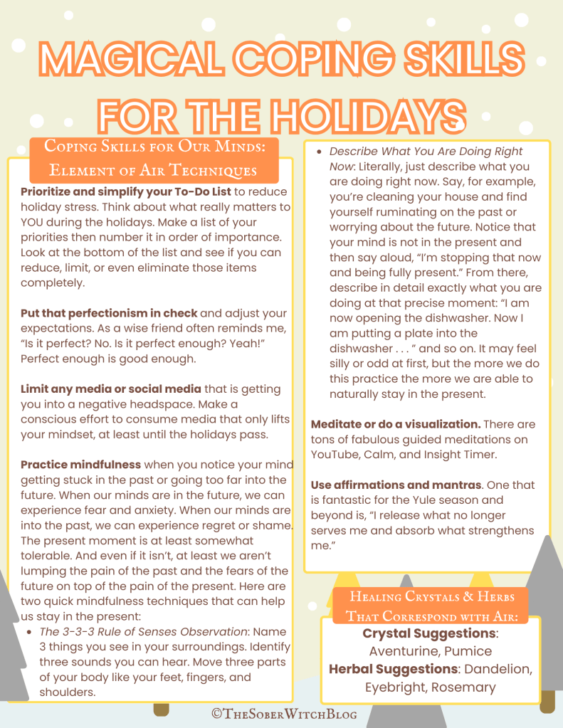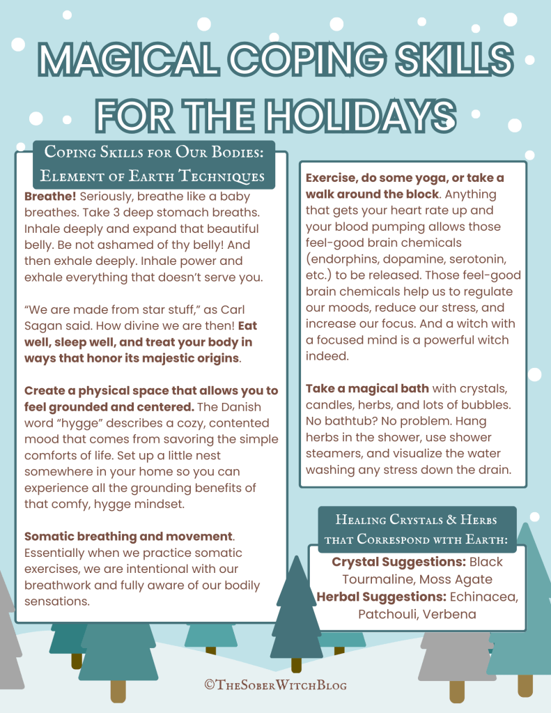 Naturally, I keep on thinking of newer and more magical skills that I wish I had included, but I will definitely put out an expanded version next year. Until then please feel free to share witchy, magical, practical coping skills that you utilize to persevere through the holidays in the comments!